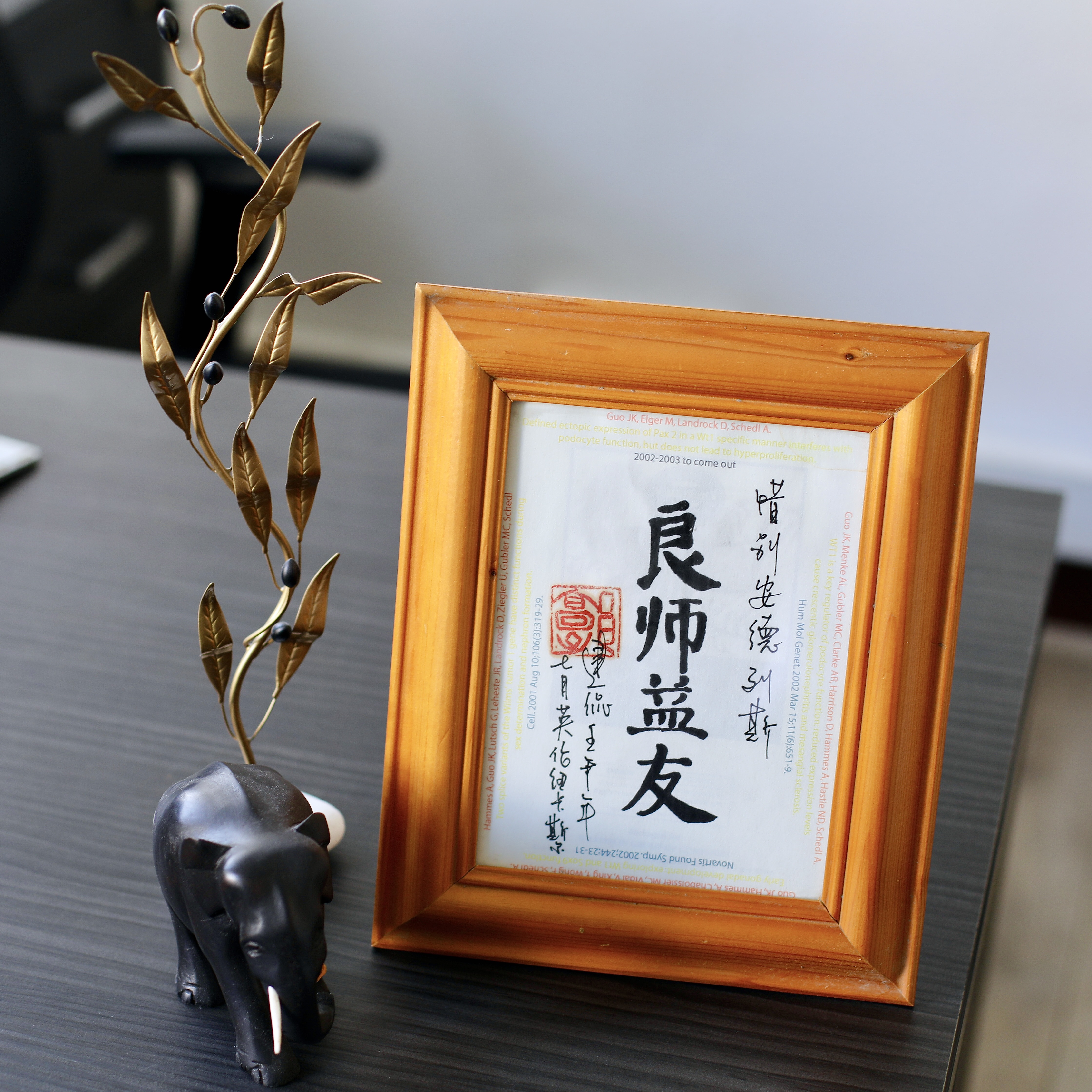 « La science est internationale et prospère dans un environnement multiculturel. Les objets choisis pour la photographie sont des cadeaux d'anciens et d'actuels étudiants de mon labo qui viennent du monde entier (Chine, Sri Lanka, Grèce, Brésil etc.). Ils symbolisent pour moi le fait que nous pouvons non seulement vivre et travailler ensemble, mais aussi apprendre les uns des autres et créer une véritable synergie. »
