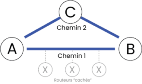 A votre avis, dans la configuration ci-dessous, quel chemin sera le plus efficace pour transférer des données du point A au point B ?